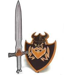 Leuke en veilige set voor kleine krijgers: een schuimen zwaard en schild met Viking-thema. Dankzij het zachte materiaal is het spel veilig, licht en ideaal als accessoire voor een carnavalskostuum of voor avonturen thuis.