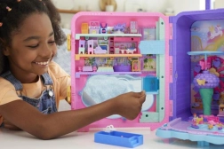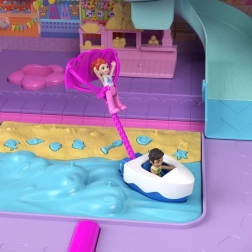 Deze kleurrijke POLLY POCKET Pollyville Resort Roll Away koffer klapt in een handomdraai uit tot drie verdiepingen vol plezier: hotellobby met lift, kamer met bad, een smakelijk buffet, arcadehallen en een buitengebied met strand. Beweegbare elementen en activering via een drempel brengen de attracties tot leven – je wacht parasailen, een helikoptervlucht, een spiraalglijbaan en een reuzenrad.