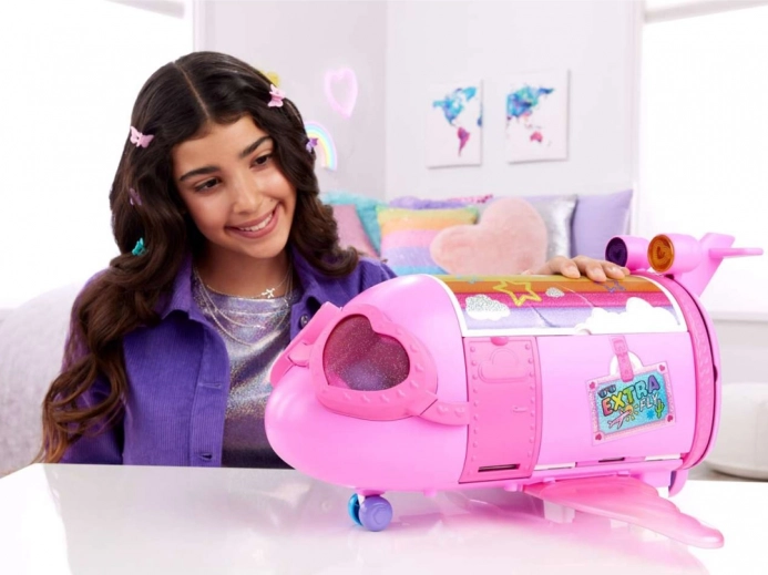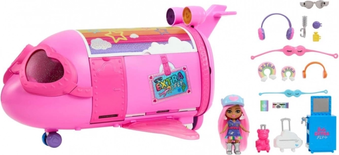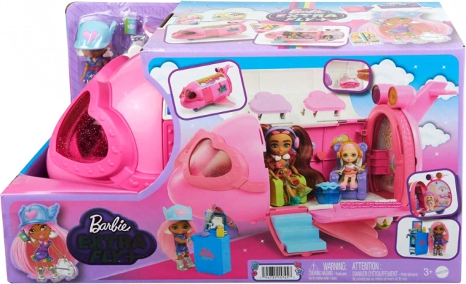Roze regenboogvliegtuig BARBIE Extra Fly Minis met piloot