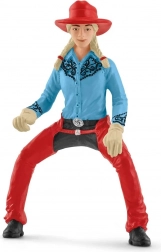 Unieke cowgirl-figuur in een blauw shirt en rode broek met een hoed. Bevordert realistisch spel en plezier.