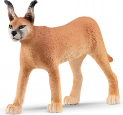Speelfiguur vrouwtjeskarakal van het bedrijf Schleich is een gedetailleerd model dat deze majestueuze kattensoort genaamd karakal nauwkeurig weergeeft, bekend om zijn lange, zwarte plukoren.