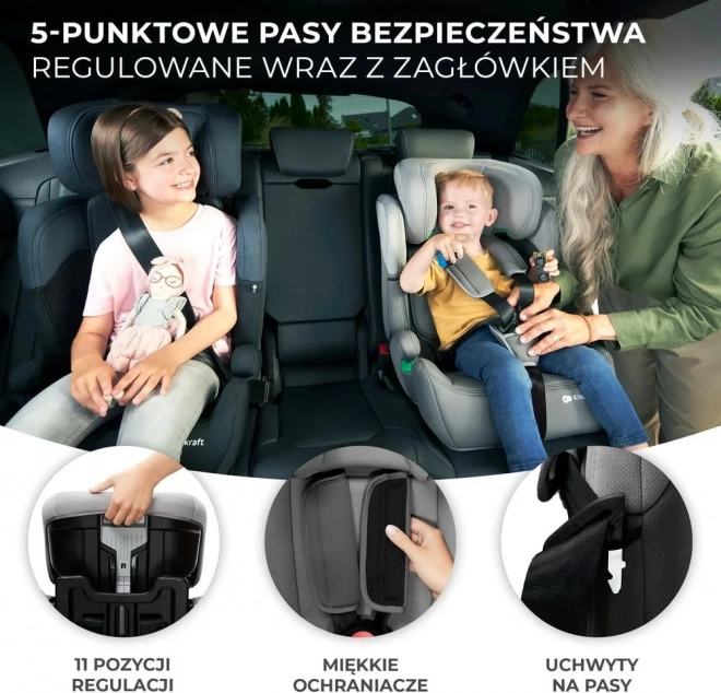 Dit is het autostoeltje COMFORT UP i-Size - een autostoeltje voor kinderen van 76 tot 150 cm hoog, dat voldoet aan de nieuwste norm R129 i-Size. Door het te kopen, kunt u er zeker van zijn dat uw kind voldoende beschermd is van ongeveer 15 maanden tot 12 jaar! Het is een universeel autostoeltje - het is ook geschikt voor auto's zonder ISOFIX-systeem. Dankzij de gelijktijdige instelling van de hoofdsteun en de veiligheidsgordels (11 posities) kunt u het eenvoudig aanpassen aan uw groeiende kind. De kleine passagiers wachten op een brede, diepe zitting en een verwijderbare modulaire inzet voor kleinere kinderen. Het stoeltje is uitgerust met 5-punts veiligheidsgordels met zachte bekleding, die u eenvoudig kunt opbergen als het tijd is om het kind vast te zetten met de 3-punts veiligheidsgordel. Het autostoeltje COMFORT UP i-Size zal u de komende 12 jaar vergezellen!