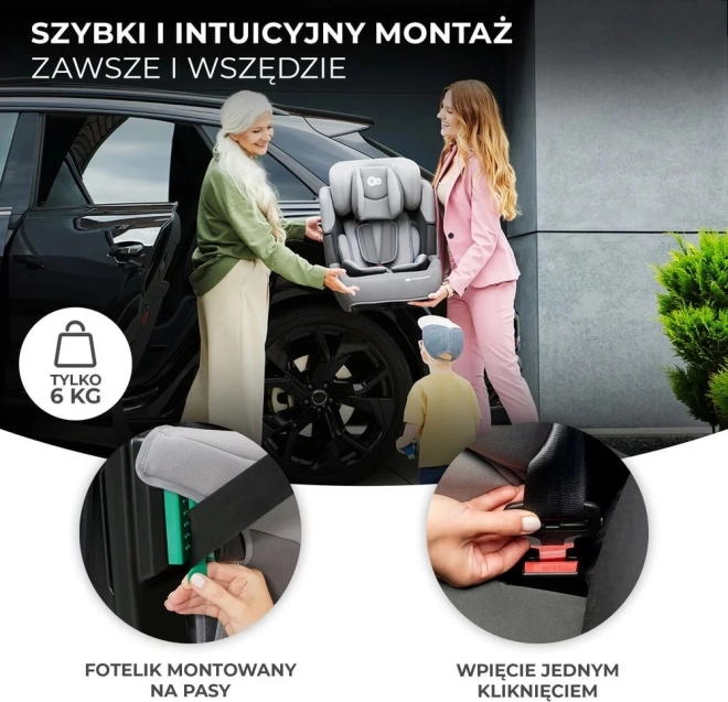 Het is een universeel autostoeltje - installatie met behulp van de 3-punts autogordel maakt montage van het autostoeltje ook mogelijk in auto's zonder ISOFIX-systeem. Het is zeer snel en intuïtief. Het heeft ook geleiders die het doorhalen van de gordel vergemakkelijken en het correct vastzetten van het kind. - Tot 12 jaar