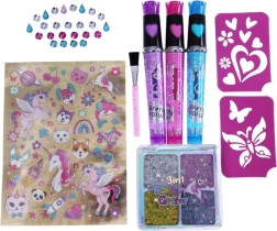 Geweldig tattoo studio voor kinderen, waarmee je haar en lichaam kunt versieren met kleurrijke patronen en steentjes.