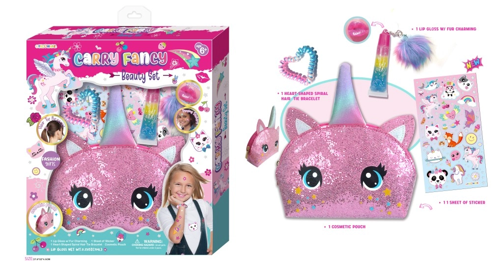 Prachtige make-upset ideaal voor kinderen! Inclusief stickers, lipgloss en een cosmetictasje. Plezier gegarandeerd.