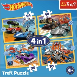 Set van vier puzzels met motieven uit de legendarische serie HOT WHEELS van Trefl, perfect voor kinderen vanaf 4 jaar. Het verschillende aantal stukjes (35, 48, 54 en 70) ondersteunt stapsgewijs leren, en ontwikkelt fijne motoriek, concentratie en perceptie. Dankzij de stevige kartonnen kwaliteit en de heldere kleuren genieten kinderen van plezier thuis en onderweg.