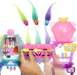 Stap in de wereld van Trolls Mount Rageous met de schattige Poppy-pop, vier Hair Pops en meer dan 25 accessoires voor eindeloze verhalen. De dubbeldekkerspeelset met een glijbaan, barhoek, kleedkamer en podium biedt volop interactieve fun, inclusief een Hair Pops-lanceerder – schuif de edelsteen en kijk hoe de Hair Pops wegschieten! Perfect voor creatief spel voor kinderen vanaf 3 jaar.