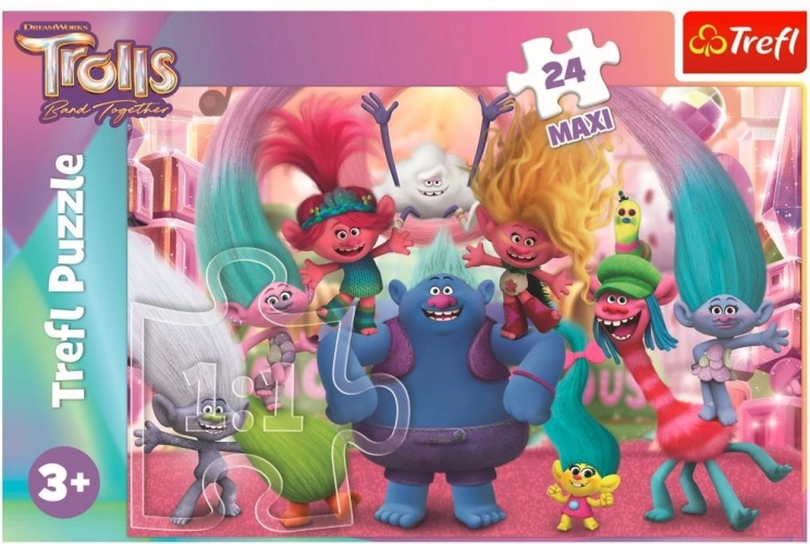 Kinderpuzzel maxi 24 stukjes met het thema TROLLEN is ideaal voor kinderen vanaf 3 jaar. Grote stukjes maken het leggen makkelijker, ontwikkelen de fijne motoriek en observatievermogen. Gemaakt van ecologische materialen en gelamineerd papier dat niet reflecteert voor comfortabel en veilig spel.