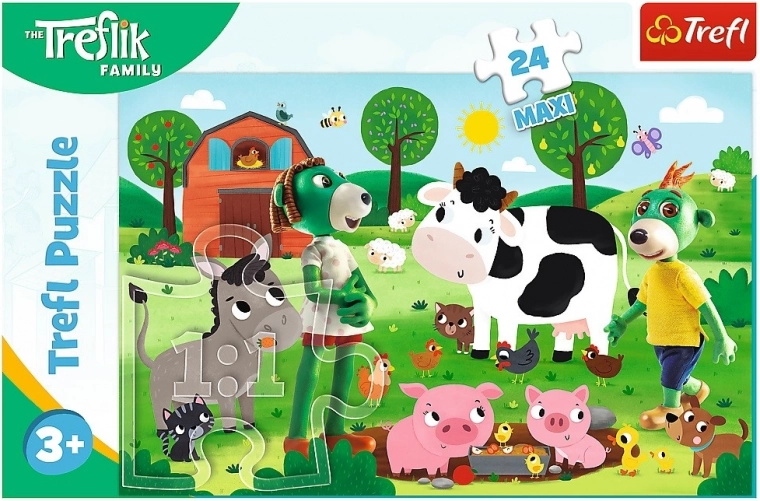 Ontdek de magie van puzzelen met de 24 maxi puzzel van hoogwaardige kartonkwaliteit. De levendige, veelkleurige illustratie met personages uit de animatieserie Familie Treflik trekt de aandacht en motiveert kinderen om keer op keer te spelen. Geschikt als eerste grotere puzzel voor kleuters.