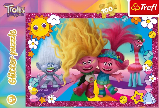 Vrolijke glinsterende puzzel TROLLS 3 met 100 stukjes die alle kleine fans van glitter en kleur zal verrukken. Dankzij de fijne glitters straalt het plaatje na het leggen en kan het dienen als een prachtige decoratie voor de kinderkamer. Ideaal voor de ontwikkeling van geduld, fijne motoriek en visuele verbeelding.