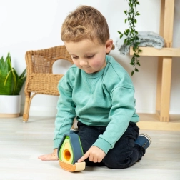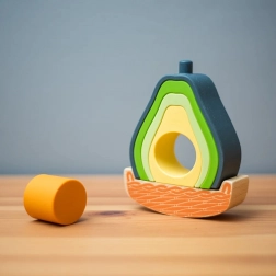 Ontdek een creatief balansspel dat de fijne motoriek, het geduld en de concentratie ontwikkelt. Kinderen kunnen de avocado uit elkaar halen, opnieuw in verschillende vormen samenstellen en de stabiliteit trainen door te wiebelen op de houten basis.