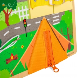 Ontdek een leuke en educatieve speelgoedset voor kinderen vanaf 3 jaar – een motorisch bord met verschillende sloten, gespen en ritsen dat de fijne motoriek, oog-handcoördinatie en praktische vaardigheden ontwikkelt. Elk openen onthult een verborgen scène en stimuleert creativiteit en nieuwsgierigheid. Gemaakt van FSC-gecertificeerd hout met respect voor de natuur.