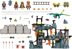 De actievolle bouwset PLAYMOBIL uit de serie DINO RISE neemt je mee naar een mysterieuze dinosaurusmijn met rails, mijnkarretjes en een werkend liftsysteem. Je wacht een reeks sluwe vallen, scherpe bochten en een dramatische reddingsmissie met de figuren Kaidan, de leider van de mijnwerkersbende en twee schurken, en met de dinosaurus Dimorphodon.