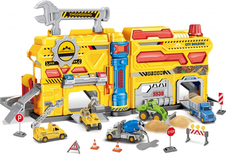 Een leuk en gemakkelijk mee te nemen bouwstation voor kleine bouwers met lichteffecten en geluidseffecten, twee vrijrollende autootjes en rijk accessoire. In de doos vind je verkeersborden, stickers en een geïllustreerde handleiding voor eenvoudig monteren. Ideaal cadeau om fantasie en motoriek te ontwikkelen.