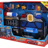 Leuk en praktisch speelgoed voor kleine politiehelden: het draagbare politiebureau met afmetingen 56 × 18 × 23 cm biedt licht- en geluidseffecten, bediening via de knop op het blauwe paneel en rijk accessoires. Inclusief 2 auto’s met vrijloopwielen, verkeersborden, brandblusser, wasstraat, tankstation, diagnosestation en meer. Batterijen 3× AG13 zijn inbegrepen.