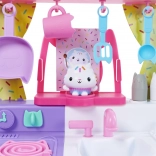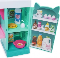 We presenteren de Cakey Cat Kitchen-keukenset voor kinderen uit de wereld van Gabin’s magisch huis. Deze speelkeuken is een geweldige aanvulling op de speelgoedlijn van Gabin’s magisch huis voor zowel meisjes als jongens, met meer dan 20 keukentoebehoren en een hoogte van meer dan 91 cm. De Cakey’s keuken is uitgerust met een fornuis, een gootsteen met afdruiprek, 10 keukengerei- en serviesstukken, haken boven het raam, 9 speelvoedingsmiddelen en een koelkast met foto’s van Gabin en haar katjes, waarin je het speelvoedsel, accessoires en andere speelgoed kunt opbergen. De prachtige keuken bevat ook een grote figuur van Cakey de kat met een speciale standaard die aan het raam kan worden bevestigd, zodat Cakey je keukencreaties kan bekijken. Druk op de knop op Cakey’s standaard en draai aan de knoppen van het fornuis om meer dan 20 geluiden en zinnen te activeren, plus 9 kookgeluidseffecten, 3 muzikale nummers en 11 Cakey-uitspraken uit de populaire Netflix-serie Gabin’s magisch huis. Wil je de kleine keuken nog wat uitbreiden, dan is er onder het fornuis een plank speciaal ontworpen voor de Bakey with Cakey Oven (apart verkrijgbaar). Cakey’s keuken-speelset is een onmisbare aanvulling voor alle fans van Gabin’s magisch huis, waarmee ze scènes uit hun favoriete kookprogramma’s kunnen naspelen of eigen culinaire creaties voor familie en vrienden kunnen bereiden.