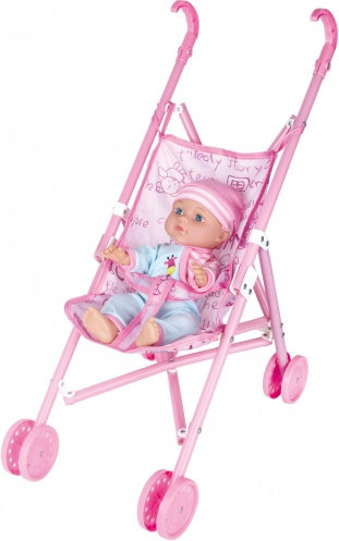 Een schattige baby met geluidseffecten en een opvouwbare kinderwagen zal elke kleine verzorger blij maken. De set bevat veel accessoires voor het spelen – mini-kinderwagen, bakje met bestek, po en flesje. Bij het indrukken van het buikje klinken geluidseffecten. Batterijen 3× AG13 zijn bij de verpakking inbegrepen.
