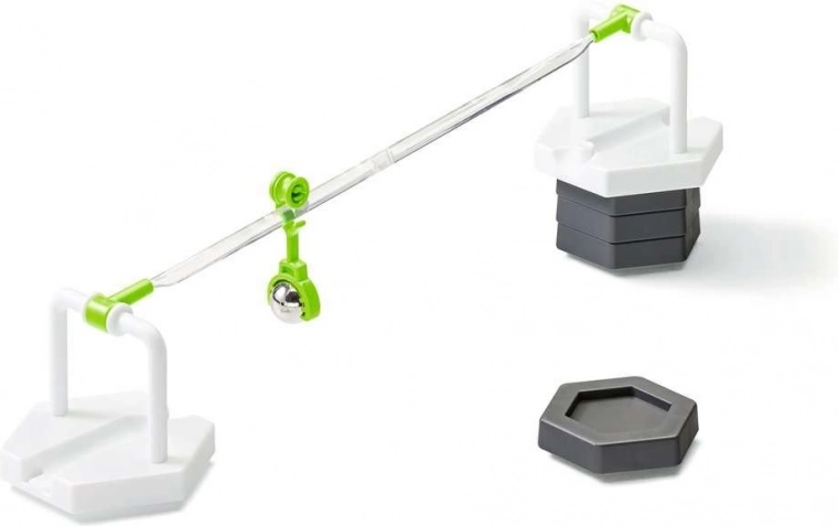 Het uitbreidingsonderdeel GraviTrax kabelbaan 2.0 verlegt de grenzen van je knikkerbaan. Je overbrugt er elegant lange rechte stukken en duidelijke hoogteverschillen mee en verbindt vloeiend ook verder uit elkaar liggende baandelen. De activatie is intuïtief – een knikker start de kabelbaan, die het eindpunt bereikt en energie doorgeeft aan de volgende knikker. Zo ontstaat een vloeiende, spannende sequentie die tempo en speelplezier verhoogt.