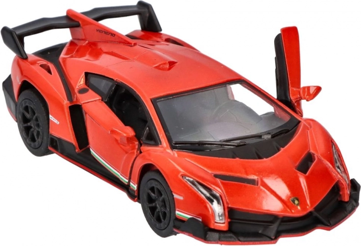 Geniet van de iconische supersportwagen Lamborghini Veneno in compact formaat 1:36. Het model valt op door scherpe lijnen, een sportieve vleugel en authentieke details, waaronder verlichting, wielen en aerodynamische elementen. Dankzij de combinatie van metaal en kunststof voelt het stevig en realistisch aan.