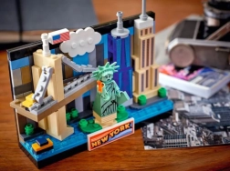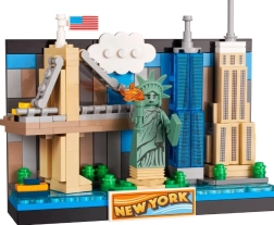 Laat je betoveren door de skyline van New York met deze 3D LEGO-ansichtkaart. Dit cadeau toont de hoogtepunten van de stad, waaronder het Vrijheidsbeeld, het Empire State Building en One World Trade Center. Ideaal als stijlvolle decoratie.