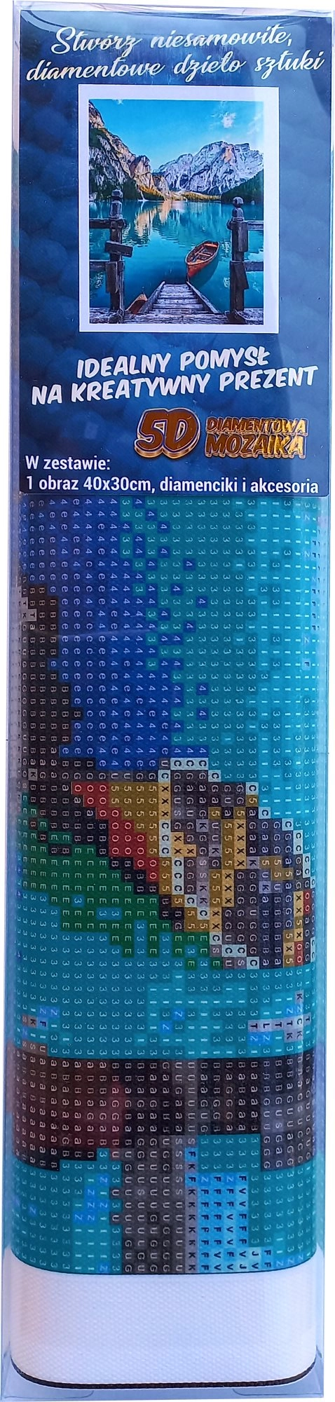Werkwijze: Het canvas is bedekt met een kleeflaag en afgedekt met een transparante folie. Verwijder de folie geleidelijk terwijl u de steentjes aanbrengt. Volg de meegeleverde legende om de juiste kleuren te vinden en bevestig de steentjes met behulp van de wax en pen op het canvas.