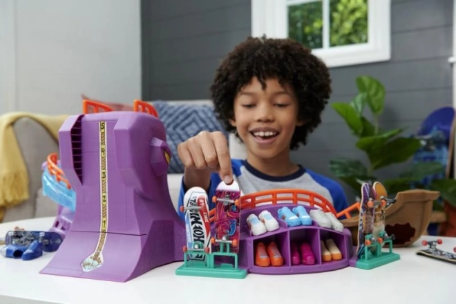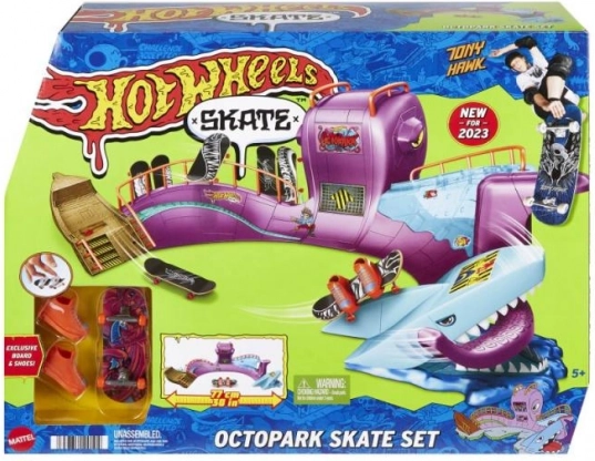 Hot Wheels Skate Octopark is een stijlvolle speelset voor fingerboarding. Maak de rit van het reusachtige octopushoofd en beleef een epische rit vol ramps, trappen en verrassingen in de vorm van een haai!