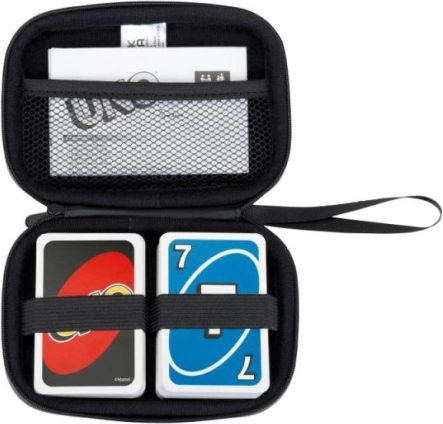 Organiseer uw UNO-kaarten met dit handige reisetui. Dit zorgt ervoor dat u uw kaarten altijd bij de hand hebt en beschermd zijn tegen vocht. Het etui is uitgerust met een binnenvak van gaas, perfect voor het opbergen van de spelinstructies.