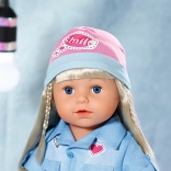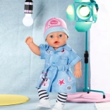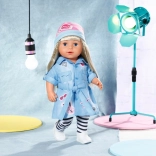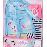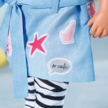Stijlvolle overhemdjurk voor de BABY born-pop van 43 cm met een casual denimlook en elegante details. De set bevat een jurk met riem, gestreepte leggings, een roze mutsje en witte sneakers. Ideaal voor creatief spelen en verkleden, met nadruk op hoogwaardige afwerking, gemakkelijk aan- en uittrekken en rijk accessoirespakket.