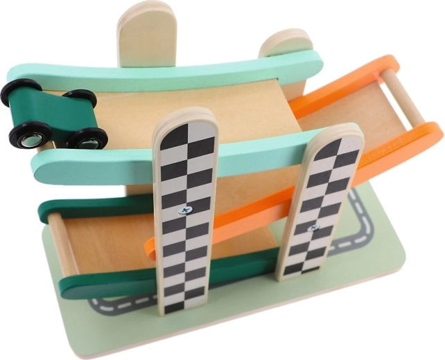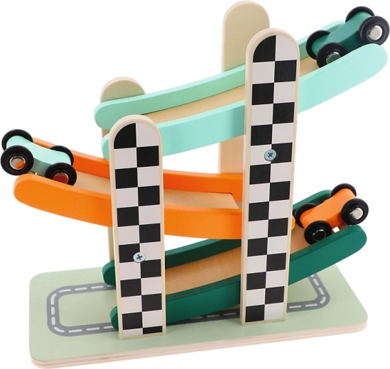 Cascade racebaan voor auto’s met 4 wagens, hout en kunststof, 33 × 32 × 10 cm