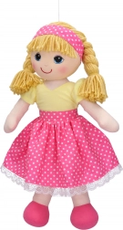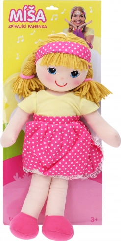 Deze prachtig vervaardigde stoffen pop, geïnspireerd door de favoriete zangeres Míša Růžičková, is de ideale keuze voor alle kleine meisjes die van muziek houden en met poppen spelen. De pop is uitgerust met een eenvoudig mechanisme dat het afspelen van zeven bekende liedjes mogelijk maakt: