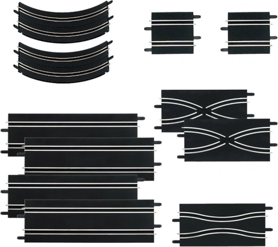 - 4× rechte baan 342 mm, 2× kruising, 1× chicane, 2× onderdelen voor verticale wand, 2× rechte baan 114 mm
