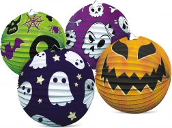 Stijlvolle halloween-lampion in de vorm van een bol met een diameter van 25 cm die elke party, tuinfeest of lampionoptocht laat stralen. Dankzij de opvouwbare constructie is hij licht, eenvoudig op te hangen en creëert hij in een oogwenk een griezelige sfeer. Kies uit 4 verschillende halloween-ontwerpen met een pompoen, geest, schedels en een spin. Ideaal als hangdecoratie voor binnen en voor overdekte buitenactiviteiten.