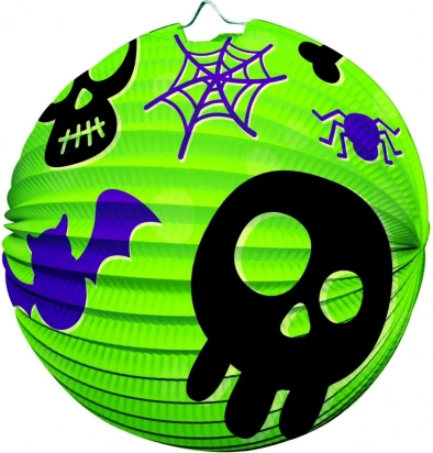 Creëer in een handomdraai een betoverende halloween-decoratie. De papieren lampion met een diameter van 25 cm heeft een geribbelde constructie, een metalen ophangoog en een print met opvallende halloween-motieven. Perfect voor themafeesten, carnaval, verjaardagen en als versiering van de kinderkamer.