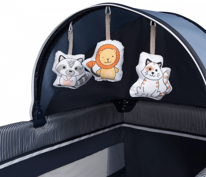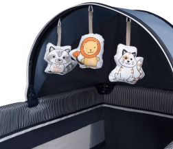 Rijke accessoires verhogen het comfort voor kind en ouders: het meegeleverde muskietennet beschermt tijdens de slaap, de verschoontafel en het zijpaneel met drie vakken houden essentials binnen handbereik. Interactieve elementen zoals melodieën en een schattige hond zorgen voor vermaak, handgrepen ondersteunen het leren staan. De hoogwaardige, zachte mat is slijtvast en eenvoudig te reinigen.