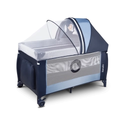 Praktisch en veilig reisbedje voor kinderen met zij-ingang met ritssluiting, verstelbare matrashoogte, verschoontafel en uitgebreide accessoires voor comfortabel reizen. Dankzij het LockGuard-systeem, de hoogwaardige zachte mat en de wielen met rem is het bedje stabiel en gemakkelijk te verplaatsen. Inclusief muskietennet, handgrepen om opstaan te leren en een zij-organizer.