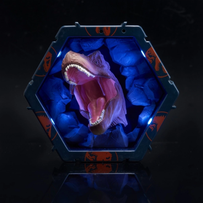 Ontdek een uniek verzamelobject uit Jurassic Park met een Tyrannosaurus-thema, voorzien van speciale verlichting via een infraroodsensor.