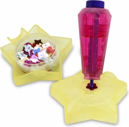 De sterrenstok bevat honderden glinsterende versieringen die herhaaldelijk kunnen worden gebruikt om de pluchen knuffels te decoreren.