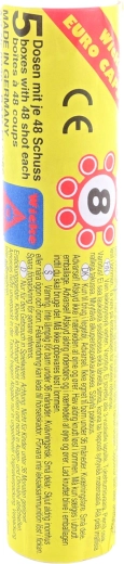 Praktische set knalkapsels voor speelgoedpistolen: in totaal 48 ringen met 8 schoten per ring in een robuuste kunststof buis. Ideaal voor langdurig speelplezier, eenvoudig mee te nemen en veilig op te bergen. 48 ringen, 8 schoten per ring, kunststof buis, leeftijd 3+.