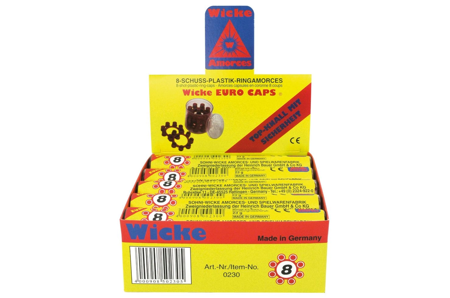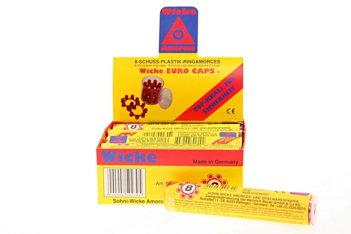 Vul je uitrusting voor actiespel aan met kwalitatieve knalkapsels voor speelgoedpistolen. De verpakking bevat 48 ringen, elk met 8 schoten, voor vele uren plezier. De kapsels zijn opgeborgen in een handige kunststof buis voor gemakkelijk dragen en veilig opbergen.