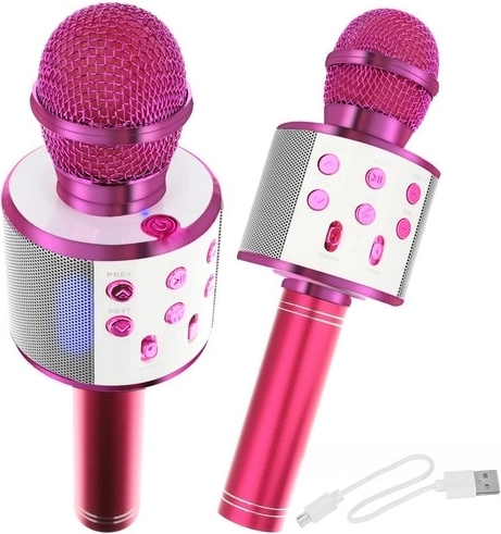 Deze multifunctionele karaokemicrofoon in een elegante roze kleur combineert een microfoon en een krachtige luidspreker in één. Koppel eenvoudig via Bluetooth 4.0 of sluit bekabeld aan en speel muziek af, zing, neem podcasts op of stream. Dankzij ruisonderdrukking klinkt je stem helder en de effecten Bass, Sopran en Echo geven je performance een professionele touch.