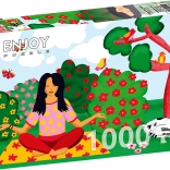 Ervaar ontspanning tijdens het leggen van deze prachtige puzzel met een yogathema in het park. De puzzel biedt kwalitatief vermaak en verbetert de concentratie.