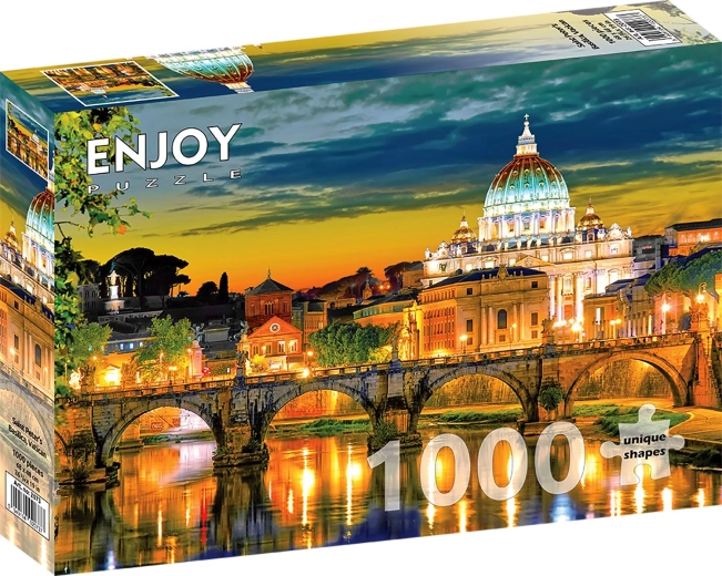Geniet van plezier en ontspanning met deze geweldige puzzel van de Sint-Pietersbasiliek in het hart van Vaticaanstad. De puzzel met 1000 stukjes biedt een mooie uitdaging voor alle liefhebbers van legpuzzels. Na het leggen schittert de puzzel met zorgvuldige details en levendige kleuren die je interieur prachtig verfraaien.