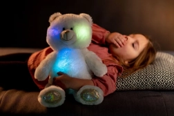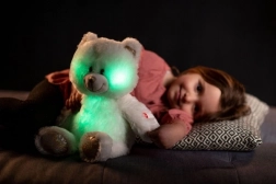 De beer straalt licht uit en verandert van kleur in het donker voor een gevoel van veiligheid en gezelligheid.