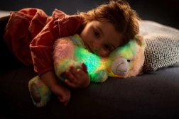 De beer is niet alleen heerlijk zacht om aan te raken, maar verlicht ook de duisternis met zijn veranderende kleuren, wat een magische sfeer creëert. Door de poot in te drukken begint ontspannende melodieën te spelen, die elk kind kalmeren.