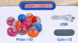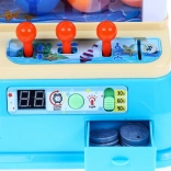 | Ieder kent de populaire automaten in winkelcentra waar je een mascotte kunt grijpen. Wij presenteren een kleinere versie, een mini-automaat die iedereen veel plezier biedt. De game heeft geluids- en lichteffecten. Er zijn 3 moeilijkheidsniveaus: 30 s, 60 s, 90 s. Het spel start na het inwerpen van een plastic munt (12 stuks inbegrepen). Doel van het spel is om een bal (10 stuks inbegrepen) te vangen met de grijper in de automaat; afhankelijk van het moeilijkheidsniveau heb je 30 s, 60 s of 90 s. Het spel start na het inwerpen van een plastic munt (12 stuks inbegrepen). Tijdens het grijpen worden we begeleid door vlotte muziek. We kunnen een verrassing in de bal stoppen; dan wordt het spel nog interessanter. Naast ballen kunnen we ook kleine speeltjes, mascottes e.d. in de machine plaatsen. De game heeft twee volumeniveaus en de mogelijkheid om lichteffecten aan of uit te zetten. De automaat werkt op 3 x LR20-batterijen (niet inbegrepen) of via de USB-kabel (inbegrepen). Het speelgoed is bedoeld voor kinderen vanaf 3 jaar en is CE-gecertificeerd. | |