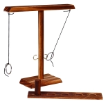 | | - houten spelskelet bestaande uit 3 elementen (basis, pin, bovenlat), - 2 koorden, - 2 haken, - lat met ronde uitsparingen, - pin |