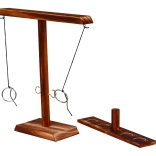 | | Houten, behendigheids- en verslavend spel voor kinderen vanaf 5 jaar, maar ook voor volwassenen.Geweldig voor feestjes, teambuildingevenementen en vakanties. Biedt urenlang plezier en verbetert de oog-handcoördinatie. Eenvoudig te monteren en demonteren, zorgvuldig vervaardigd en absoluut uniek. Dit is een traditioneel spel waarbij je een ring gooit zodat deze op de haak terechtkomt. Na elke succesvolle worp moet je de pin op de basis met ringen één vakje richting de tegenstander verplaatsen. Wie de tegenstander als eerste bereikt, wint. Let op: in de versie voor volwassenen kan de pin worden vervangen door een glaasje. Spelprincipes: - plaats de houten pin in het midden van de plaat, - probeer de metalen ring zo te mikken dat hij op de haak valt, - als je raakt, verplaats je de houten pin 1 vakje richting de tegenstander, - als je mist, is de tegenstander aan de beurt, - wie als eerste de tegenstander bereikt, wint. |