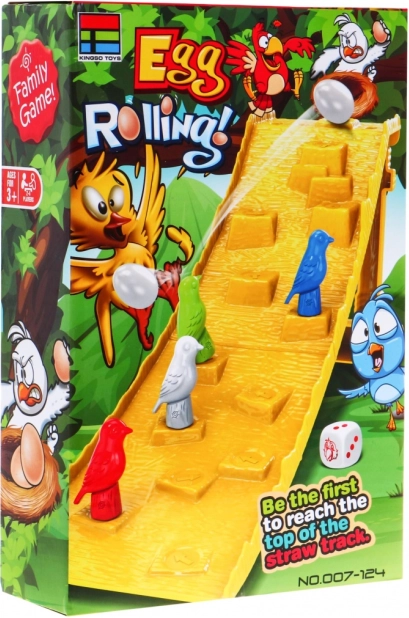 Een leuk en spannend bordspel voor de allerkleinsten vanaf 3 jaar, waarin kleurrijke vogeltjes over strobaaltjes naar de top van de baan racen. Spelers gooien met de dobbelsteen en verplaatsen hun pionnen, maar pas op voor het vallende ei! Dat kan een tegenstander terug naar start duwen. Ideaal voor 2–4 spelers, ontwikkelt behendigheid, reactievermogen en tactisch denken.