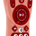 De interactieve afstandsbediening is ontworpen om kinderen te boeien met een realistische uitstraling en tal van functies. Bij elke druk op een knop gaat de LED branden en klinken melodieën, liedjes en thematische geluiden, geïnspireerd op films, nieuws, muziekprogramma’s en sprookjes. In het midden bevindt zich een draaiwieltje dat een speelse mechanische functie in het bovenste deel van de afstandsbediening activeert.