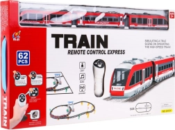 De grote treinset met sporen is bedoeld voor kinderen vanaf 3 jaar. De set bestaat uit 62 onderdelen, de lengte van het spoor is tot 396 cm. De trein wordt bediend met een afstandsbediening, rijdt met of tegen de klok in. De trein maakt rijgeluiden en de voor- of achterlichten branden afhankelijk van de rijrichting. De speelgoedtrein werkt op AA-batterijen - 2 x 1,5 V (afstandsbediening) en 3 x 1,5 V (trein).